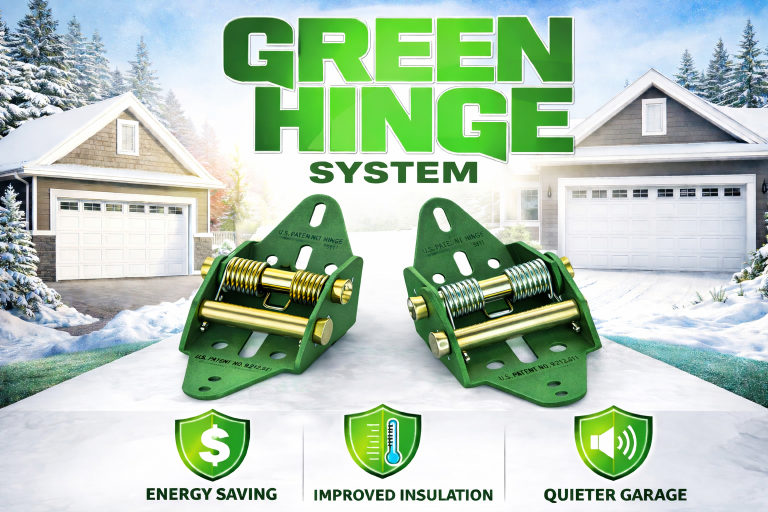 The Green Hinge System® is a patented, spring-loaded garage door hinge that automatically adjusts your overhead door for a tighter seal—eliminating gaps, reducing air leaks, and saving energy year-round.